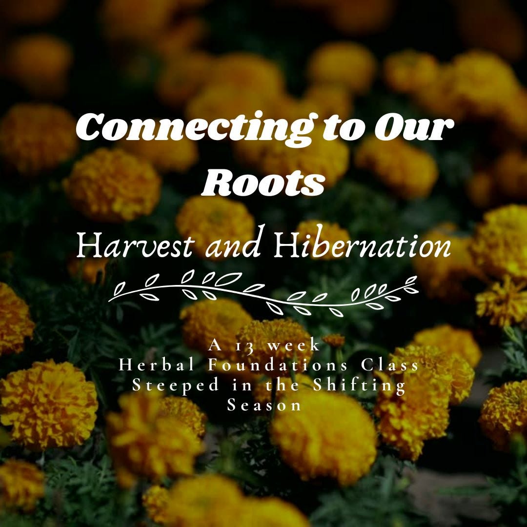 So, here it is again, Connecting to Our Roots, but with a shift. I am now calling in Connecting to Our Roots: Harvest and Hibernation. While the meat of this class remains, we will shift into an approach of digestion and reflection: taking our time to savor all the knowledge at hand and chew on their implications. Connecting to Our Roots: Harvest and Hibernation will also have a keen focus on autumnal and winter medicines: we will get to know them, learn to harvest them, and explore our options for preserving them for seasons to come.